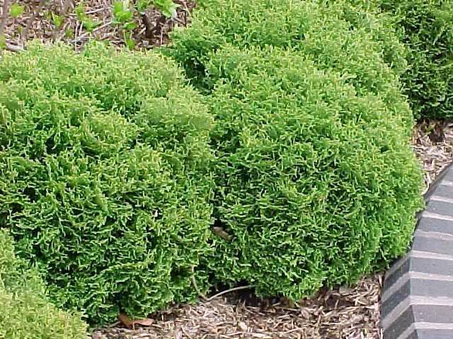 ‘Tiny Tim’ is a very slow-growing cultivar with a globular, finely-branched habit. Features scale-like, medium green foliage in flat sprays. Most often seen at maturity as a 1′ tall mound with a spread to 5′.
