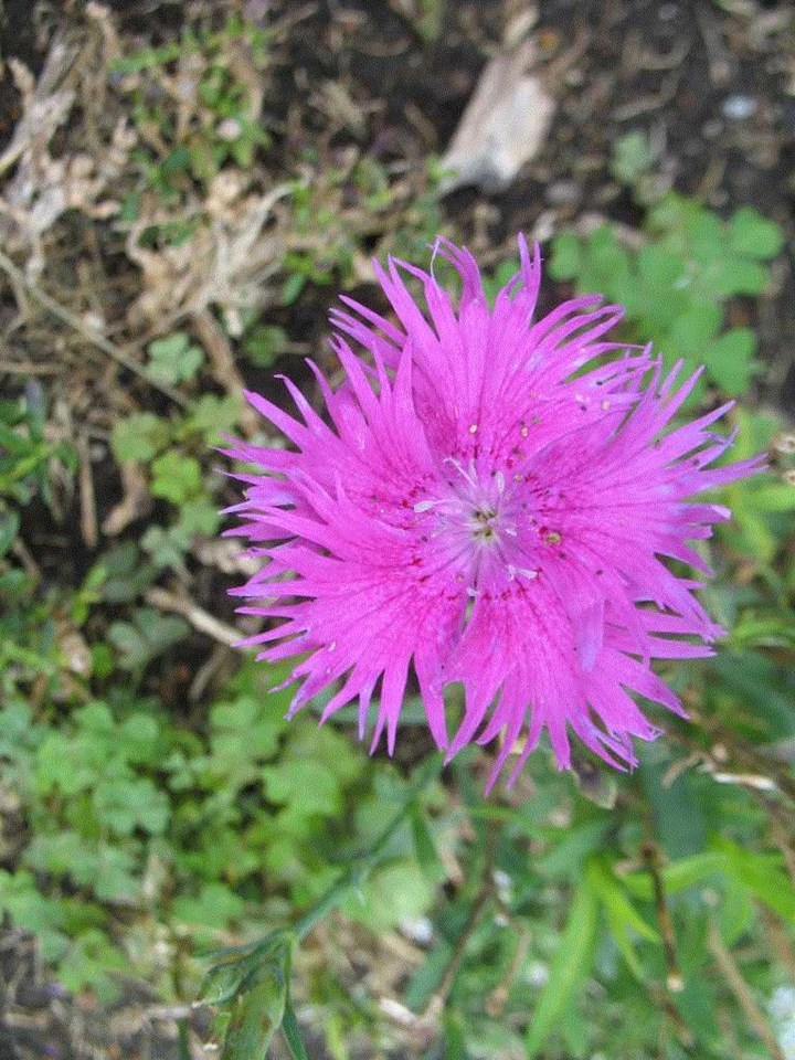 ‘Supra Purple’ is a hybrid pink. It is part of the Supra Series. It typically grows in an upright rounded mound to 8-12″ tall and to 8-10″ wide. Compact, vigorous, strongly branched plants typically form a dense mound of narrow, linear, gray-green, grass-like foliage. ‘Supra Purple’ is noted for its lengthy bloom of 5-petaled rosy pink to purple flowers (each to 5” across) with highly fringed petal edges. Flowers bloom on stems rising from the foliage mound to 12” tall. Flowers bloom from late spring (early spring if fall–planted) to late summer (June-September) with continued but somewhat sporadic additional bloom into fall (sometimes to first frost).