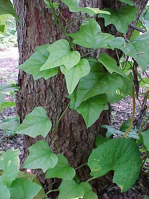 Cocculus carolinus, commonly called Carolina moonseed, is a deciduous, Missouri native, woody vine which climbs with thin twining stems or scrambles along the ground, and primarily occurs in rocky open woods, wood margins, glades, fence rows, roadsides and stream/pond margins in the southern 1/3 of the State. Best ornamental features are its foliage and its attractive red berries in fall. Typically grows 10-12′, but may grow larger in the deep South where it is not susceptible to winter dieback. Tiny, greenish-white flowers appear in loose, drooping, terminal and axillary clusters (racemes) in summer, but are insignificant. Flowers give way to loose clusters of bright red, flattened, pea-sized drupes which mature in late summer and persist well into fall. Medium green leaves (to 4″ long) are of variable shapes ranging from oval to heart-shaped to triangular.