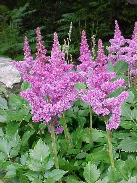 Easily grown in average, medium moisture, well-drained soils in part shade to full shade. Prefers moist, humusy, organically rich soils. Soils must not be allowed to dry out. If regularly watered, foliage will usually remain attractive throughout the growing season. A summer compost mulch helps retain soil moisture. This Chinese astilbe variety is noted for having better sun and drought tolerance than most x arendsii hybrids. Removing faded flower stalks will not prolong bloom but may improve plant appearance, particularly if a ground cover look is desired. On the other hand, many gardeners leave the flower stalks in place after bloom because of the continuing ornamental interest of the dried seed heads. Divide clumps when overcrowding occurs (every 3-4 years).