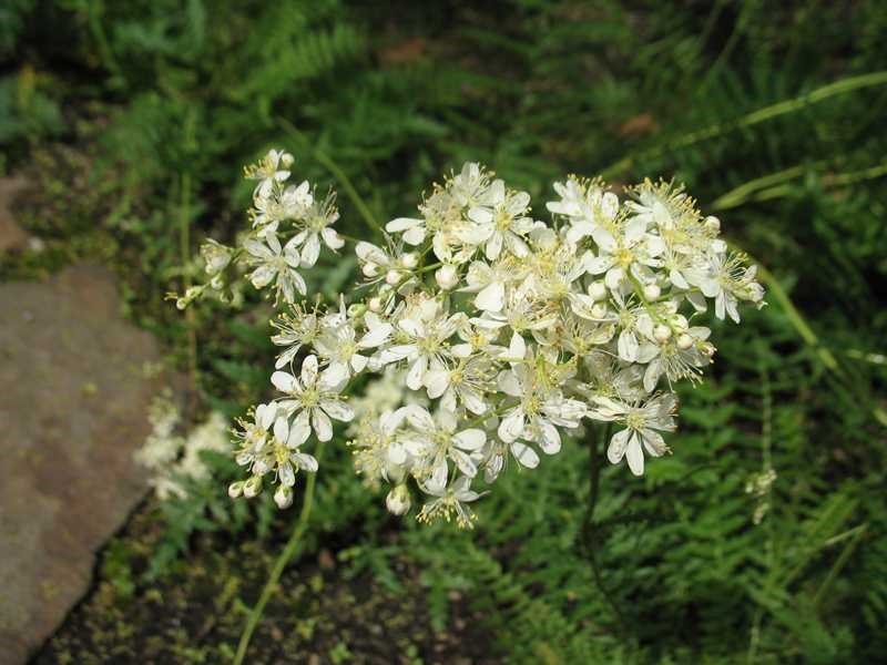 Filipendula vulgaris, commonly called dropwort, is an upright, clump-forming perennial that typically grows to 2-3′ tall. It is native to dry limestone grasslands in Europe and Asia. Compound-pinnate, finely-divided, dark green leaves (4-10″ long) contain many pairs of leaflets (to 1″ long). Plant leaves primarily appear in basal rosettes, typically forming a mound of foliage to 12″ tall. Foliage has a carrot-like or fern-like appearance. Tiny, fragrant, creamy white flowers bloom in late spring to early summer in branched, astilbe-like, terminal panicles (corymbs) that rise well above the foliage mound to 2-3′ tall atop sparsely leaved stems. Plants have tuberous spreading rootstocks. Filipendula hexapetala is now included within Filipendula vulgaris.