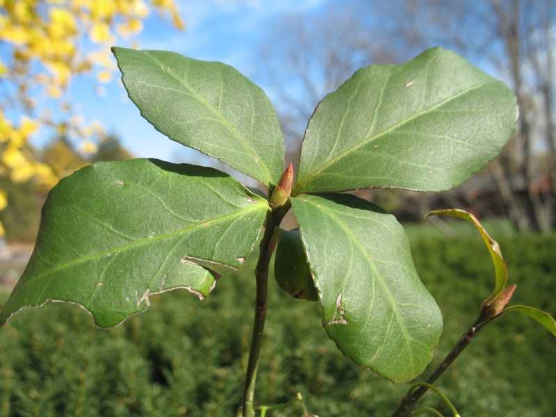 ‘Manhattan’ is a cultivar that was discovered in Manhattan, Kansas. It has glossy, broad-elliptic, deep green leaves (to 2 1/2″ long). It typically grows in an upright rounded form to 4-6′ (less frequently to 8′) tall.