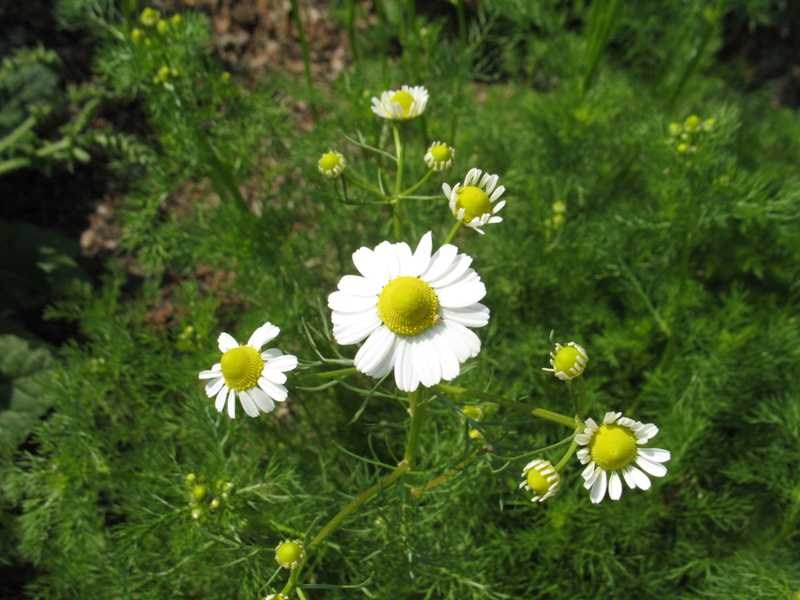 Matricaria recutita, commonly called German chamomile or sweet false chamomile, is an annual aromatic Eurasian herb that is commonly grown in herb gardens for harvest of its flowers which are principally used to make chamomile tea which is a mild sedative herbal drink recommended for a large number of applications including calming nerves, relaxing tense muscles, alleviating stress, dispelling insomnia and treating indigestion. This plant has escaped garden plantings and has naturalized in open areas and along roads in various parts of North America. It typically grows to 12-24″ tall and to 12″ wide on stems clad with aromatic but bitter tasting double pinnate leaves (to 3″ long). Showy daisy-like flowers bloom summer to fall. Each flower features 10-20 petal-like white rays surrounding a showy bright yellow domed center disk of tubular yellow florets. For herbal use, harvest flowers when fully open. Flowers may be used fresh off the plant or dried and stored in airtight containers (freeze if product will not be used soon). German chamomile is used in most commercially marketed packages of chamomile tea rather than Roman chamomile (Chamamaemelum nobile) in large part because the former has a much sweeter and less bitter taste than the latter.