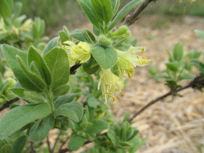 Lonicera caerulea, commonly known by a variety of common names including blue honeysuckle, honeyberry, sweetberry honeysuckle, and haskap, is a circumpolar, multi-branched, deciduous shrub that is native to moist boreal forest areas, mostly in peaty soils, in northern temperate climates in Asia, Europe and North America. This shrub in general is unlike many of its honeysuckle relatives in that it produces an edible, tasty, blueberry-like fruit. It typically grows to 4-6’ tall and as wide. Opposite, elliptic to ovate, glaucous green leaves (each to 2-3” long) have slightly wavy leaf margins. Pale yellowish-white flowers (to 5/8” long) bloom in late spring to early summer (April-June) in pairs along the shoots. Fruits ripen in early summer to deep blue with reddish-purple insides. Fruits are pruinose with an oval-teardrop to almost-globose shape.