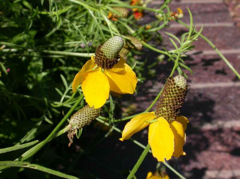 Ratibida columnifera, commonly called long-headed coneflower or prairie coneflower, is an erect, hairy, clump-forming plant that typically grows to 1-3’ tall. It ranges from Alberta to Minnesota south to Arkansas, New Mexico and Mexico. It is most common on the Great Plains. In Missouri, it is uncommonly found in prairies, waste ground and along railroads and highways (Steyermark). This is an aster family member that is perhaps most noted for the long, cylindrical, center disk of each flower and its deeply cut leaves.. Flowers bloom in summer. Each flower features a long narrow center disk (cone to 2” long) with 3-7 drooping yellow rays at the base. Leaves (to 5” long) are pinnately lobed. Ray flowers of R. columnifera forma columnifera are yellow, but the rays of the less common R. columnifera forma pulcherrima are brownish purple. Cylindrical center disks are dark brown and somewhat resemble in shape the crown of a slender sombrero, hence the additional common name of Mexican hat.