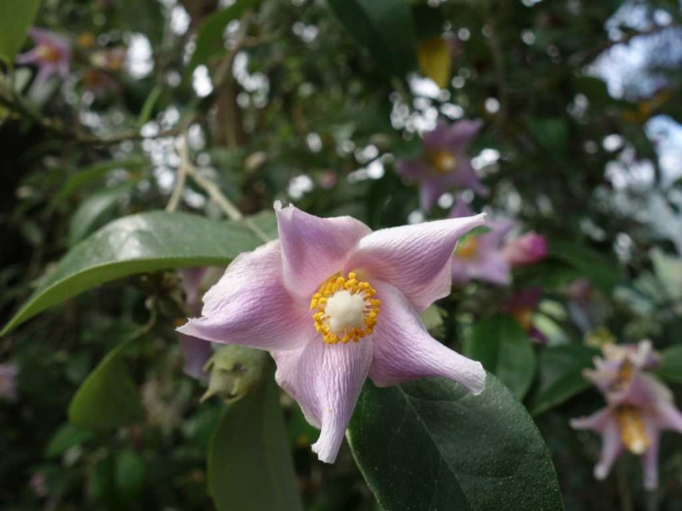 Lagunaria patersonii, known by a wide number of common names including Norfolk Island hibiscus, primrose tree and cow itch tree, is a fast-growing, evergreen tree with a slender pyramidal habit that typically grows to 20-30’ occasionally maturing to 50’ tall with a spread to 10-20’ wide. It is native to Australia, principally being found on Lord Howe Island, Norfolk Island, parts of coastal Queensland and parts of north eastern New South Wales. It is cultivated as an ornamental for streets and parks in California, Florida and Hawaii. Australian island populations are usually classified as subsp. patersonia and the mainland populations are usually classified as subsp. bracteata.