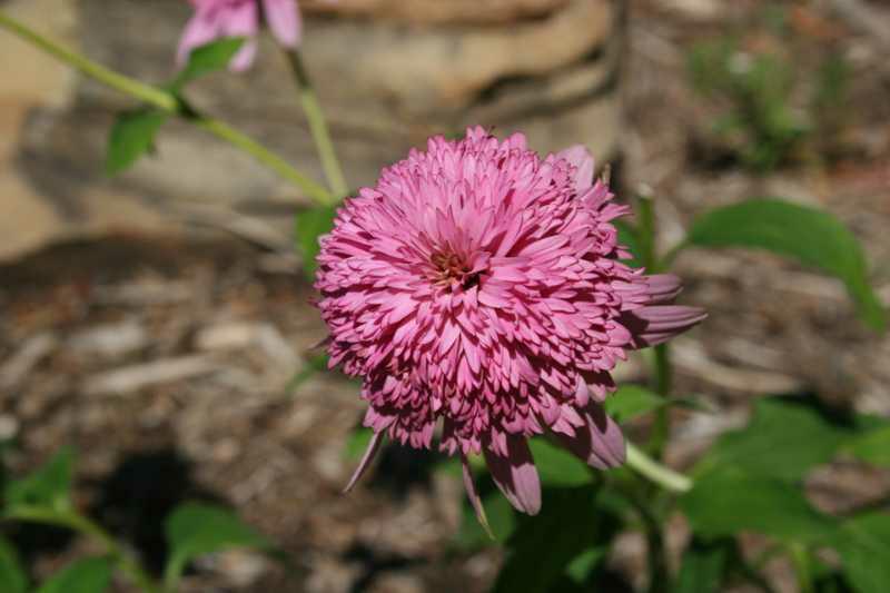 ‘Razzmatazz’ is a double-flowered version of the popular purple coneflower. It is a clump-forming perennial that is noted for its upright plant habit and its rose pink double flowers (anemone type). Each flower (to 3-4” diameter) features rose pink ray flowers and a center cone of enlarged red-purple disk flowers. Flowers bloom from mid-summer to fall atop rigid stems typically rising to 24-30” tall. Coarsely-toothed, dark green leaves (3-6” long). U.S. Plant Patent PP13,894 issued June 17, 200