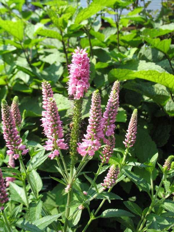‘First Love’ is an erect, clump-forming speedwell that features a June-August bloom of intense fluorescent pink flowers packed into tapered-at-the-top terminal spikes. Narrow, lance-shaped, deep green leaves (to 3” long) form a foliage mound to 6-8” tall. Flowers spikes rise above the foliage mound to 10-12″ tall. U. S. Plant Patent Applied For (PPAF).