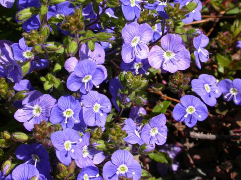 Veronica peduncularis is native to the Caucusus, Ukraine and western Asia. It is a low-growing perennial that typically forms a dense foliage mat to only 4-6” tall, spreading indefinitely outward by prostrate to ascending stems. Foliage mound is covered with saucer-shaped, pink-veined, white flowers in short, loose, axillary racemes from late spring to early summer. After the main flush of bloom, a sparse, intermittent rebloom may continue throughout the remaining part of the summer. Ovate to oblong, toothed to pinnatifid, medium green leaves (to 1” long).