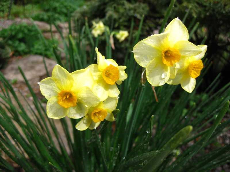 Unlike tulips, daffodils keep blooming year after year. They are best sited in beds, borders, wild gardens, open woodland areas, in front of shrubs or massed under trees. They are best planted in quantity, i.e., from smaller groupings of at least 6 bulbs to large sweeping drifts. They mix well with other spring-flowering bulbs and can be allowed to naturalize.